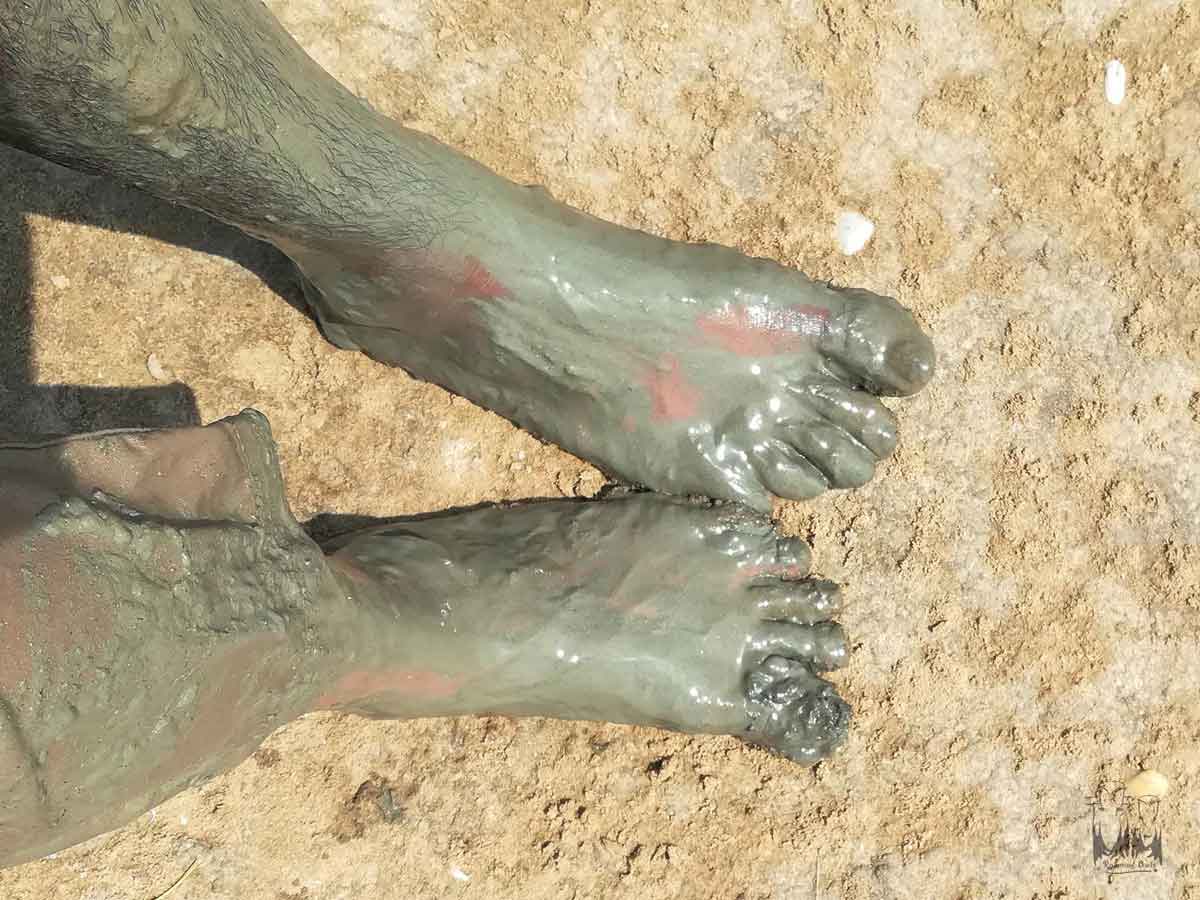 எங்களுடைய சகதி முழுக்கிய கால்கள்.