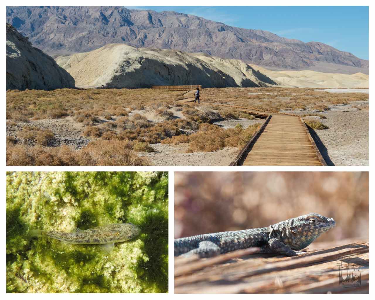 பாலைவனத்தில் மீன் இருக்கும் என்று எதிர்பார்த்திருக்கிறீர்களா ? டெத் வேலியில் இரண்டே இரண்டு இடத்தில் மட்டுமே இந்த பப் மீன் இருக்கின்றது. மிகவும் சிறிய இடத்தில் இருப்பதால் இம்மீன் அழிந்து போகும் ஆபத்தான நிலையில் உள்ளது. நாங்கள் பல்லுயிர் ஆர்வலர்கள் என்பதால் டெத் வேலி சென்ற போது, இந்த பப் மீன் இருக்கின்ற சால்ட் க்ரீக் (Salt Creek) சென்றோம். சுற்றுலா பயணிகள் க்ரீக்கை சேதப்படுத்தாமல் நடப்பதற்கு ஏற்ப மரப்பாலம் அழகாக போடப்பட்டிருந்தது. அந்த சிறிய உப்பு நீர் தேக்கத்தில் மற்ற மீன் வகைகளால் உயிர் வாழ முடியாது. ஏனென்றால் அந்த நீரில் உப்பு அளவு கடலை விடவும் நான்கு மடங்கு அதிகமாக இருக்கும், தண்ணீரின் வெப்ப நிலையும் 47 °C வரை செல்லும். பப் மீன் இனசேர்க்கை காலத்தின் போது நீல நிறத்தில் இருக்கும். அதனால் நாங்கள் நீல நிற மீனை தேடினோம், ஆனால் ஒரு மீன் கூட கண்ணில் படவில்லை. சிறிது நேரம் வெயிலில் கண் வலிக்க தேடிய பின்பு மணல் வண்ணத்திலேயே இருந்த பப் மீனை கண்டுபிடித்தோம். நாங்கள் சென்ற மாதம் இனசேர்கை இல்லை போலும், அதனால் பப் மீன்களை நீல நிறத்தில் பார்க்க முடியவில்லை.