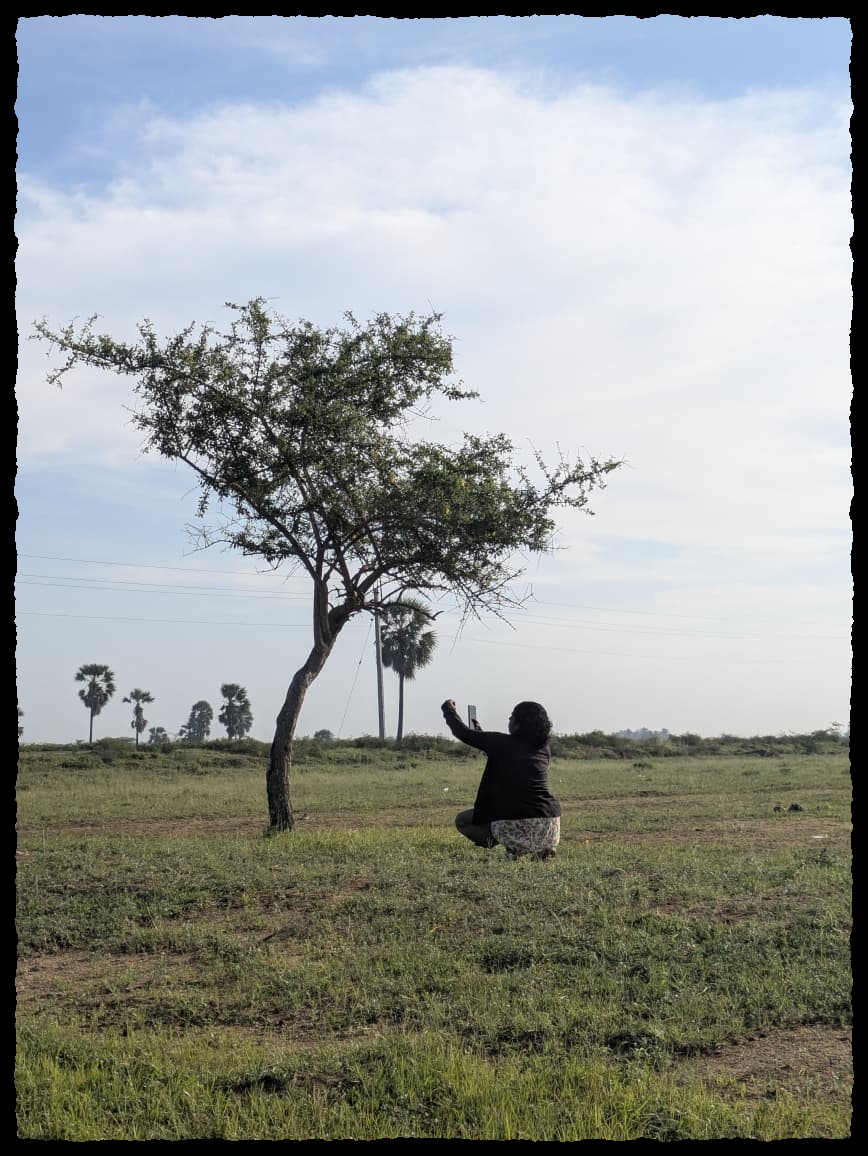 Seeing it again filled me with a quiet joy. Despite the widespread destruction and rapid changes happening all around Koonthankulam, this tiny plant was still holding on, thriving in a small, overlooked patch of land. But that joy was quickly shadowed by worry. Plot stones were scattered everywhere, silent markers of future ownership and inevitable change. They stood as a harsh reminder that if this land is sold, the flowers, the birds, and all these small, unnoticed lives could vanish overnight. In that moment, the beauty of the meadow felt both precious and painfully fragile.